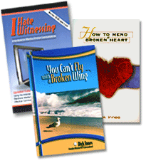 You Can't Fly With a Broken Wing "I began reading Dick's book, You Can't Fly With A Broken Wing, this morning and have almost completed it. I gave one copy to one sister and a copy of How to Mend a Broken Heart to another sister. I also ordered one Broken Heart Book for a church member. Needless to say, Dick's writings have helped me to overcome much grief and hurt from abuse, divorce and death of children. The Lord has been drawing me to places of healing and deliverance for several years now and I hope I can help some of my six siblings and many friends and people that cross my path as I have been blessed." – L.S., Texas A lady in Australia wrote, "I ordered your new book, You Can't Fly With a Broken Wing … and gave my copy away and am ordering two more. This is the most helpful book I have read for 30 years!" Another reader wrote, "I can't tell you how meaningful your chapter, 'The Magic Number,' was for me. I found it very freeing regarding a relationship that had been broken for 15 years!"
